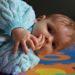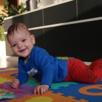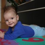 Kubík kromě toho, že se pořád otáčí na bříško, tak se na bříšku už točí ve směru hodinových ručiček, za chvíli se nám tady bude plazit. Kam to naše dítě tak spěchá? Ještě by měl ležet na zádech jako ostatní kojenci jeho věku.