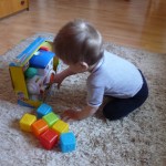 I když bude mít Kubík 1 rok až za měsíc, ale to my na Slovensku v té době nebudeme, tak dostal Kubík dárky k 1. narozeninám už teď. Dostal kostky a vláček.
