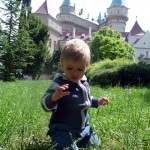 Kubíkovi na Slovensku začal konečně růst třetí zub, pravá horní jednička. Bylo to náročnější než ty dvě spodní jedničky. Horečka, mrzutost, noční pláč, nechutenství, takže přibíraní zase nehrozí 🙁 A kromě toho jsme měli i blbé počasí. Skoro pořád pršelo. Ale výlet k zámku Bojnice jsme zvládli 😉