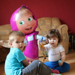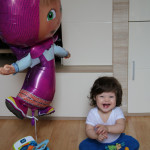 Jsme na Slovensku na 2 týdny. Je to docela náročné. Verunka si asi nemůže zvyknout na tolik „nových lidí“ (babičku, dědu a 2 strejdy) a tak pokaždé když se vzdálím, tak hrozně řve. I když teď po týdnu je to o trochu lepší, už ji může babička vzít aspoň na chvili na ruce, abych se mohla v klidu najíst, nebo dát Kubika na záchod (Kubík chce teď taky pořád mou společnost) O víkendu byl tady „Banícky jarmok“ – stánky, kolotoče, … Takže Kubik byl poprvé na kolotočích. A prý to byla „paváda“, „huvá-huvá“. A taky dostal veliký balón Máši. A tak jsme si pár dní museli hrát s Mášou, že ji bolí zoubek a musí k pánu doktorovi jako v té pohádce 🙂