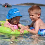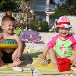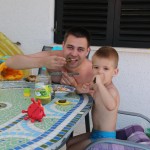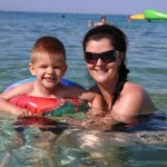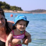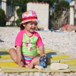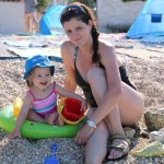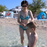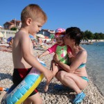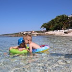 Myslím, že děti si to tam moc užily. Oba tam spávaly mnohem míň než doma. Verunka jen co otevřela oči, už ukazovala, že chce obléct plavky a vyrazit k moři. Vůbec ji nevadilo, že je 6 ráno. Ale bylo to zase príma, být s Verunkou v 7 na pláži a mít ji celou jenom pro nás. Hrály jsme si tam na pískovišti, nebo s kamínkama. A postupně přicházeli lidi a nosili si lehátka na pláž, aby si zabrali dobré místo. A v moři jsme se koupali od půl 9 nebo v 9, kdy už prisel i vyspinkaný Kubíček (on usínal bohužel až kolem 23:30 a přes den ne a ne spát)