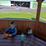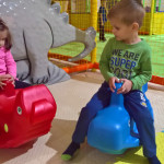 Kubík měl nějakou infekci v očích a musely jsme mu 5x denně kapat antibiotika do očí, takže nemohl do světlušek. No a jak zabavit akční dítě, když venku pořád prší? A tak vyhrála návštěva v Brumbambuli. A oba byly moc spokojení 🙂