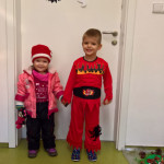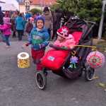 A taky jsme zvládli zúčastnit se lampionového průvodu v Čakovicích. Ten se jim moc líbil, i když lampiony jim vydrželi asi jenom prvních 15 minut průvodu. Tak moc mávali tými tyčkami s lampionmi a tahaly je po zemi, že lampiony by to do konce nevydrželi a tak jsme šli průvodem bez lampionu, jenom se svítícími hůlkami. Jako skoro všechny děti v jejich věku 🙂