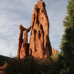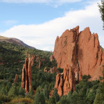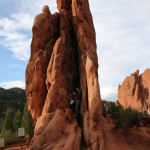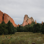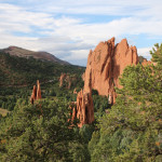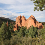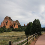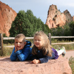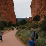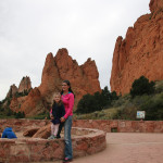 Poslední den v září (sobota) jsme vyrazili na výlet. Tentokrát to byli „Garden of the Gods“ (Zahrady Bohů). Je to park v Colorado Springs, což je asi hodina jízdy od nás. Vyrazili jsme před obědem, že si cestou tam zajdeme někam na oběd. Zastavili jsme teda v Castle Rock (asi 20 min jízdy od nás), dali si něco k jídlu a pokračovali do Colorado Springs. Na dálnici byla zácpa a tak jsme se rozhodli obejít to nějakou lokálkou. Bohužel nás bylo víc takových a tak se i na lokálce udělala zácpa, ve které jsme zůstali asi hodinu trčet. (a to jenom kvůli tomu, že dopravu na jedné křižovatce před námi řídili 2 cajti, kteří upřednostňovali jenom 2 pruhy, bohužel ne ten, ve kterém jsme stáli my. To jsme viděli až když jsme projížděli tou křižovatkou. 2 volné pruhy a 2 pruhy s několika kilometrovými kolonami. A vždy když přijelo pár aut na ty volné pruhy, tak my jsme stáli a oni projeli). Do toho vypadalo počasí tak, že každou chvilku začne moc pršet. Už jsme párkrát přemýšleli, že to otočíme a vyrazíme tam v neděli. No naštěstí jsme to neotočili a pokračovali dle plánu. Park byl krásny. Vůbec nepršelo a asi v půlce stezky se i vyjasnilo a svítilo sluníčko. A jak jinak, výlet jsme ukončili tolik dětmi oblíbenou lentilkovou zmrzkou z mekáče