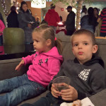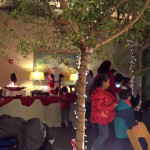 Hned u vstupu do Colorado klubu seděl u stromečku Santa, tak jsme si udělali s ním fotku. Byli tam stoly s jídlem (zákusky, hambáče, voda, nějaké červené pití, k tomu samozřejmě k dispozici led, jahody s čokoládou) Ochutnali jsme pár koláčku, jahody s čokoládou, červenou vodu a šli se podívat o patro níž k tělocvičně. Tam byli k dispozici čokoládové bonbóny a stůl se smaženými krevetami a nějakými kuličkami masa. Maso mi moc nechutnalo, ale ty velké krevety, mňam, měla jsem jich snad 10 🙂 A pak se děti vyblbli v tělocvičně. A za tu dobu, co jsme tam byli, tak stihl napadnout sníh, takže cesta domů byla docela dlouhá. Děti pořád pobíhali po sněhu a koulovali nás.