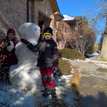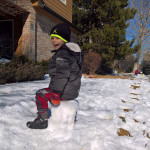 Co se týče počasí, tak zdejší rozmanité počasí mi neskutečně vyhovuje. Nejlepší na tom je to věčně modré nebe a slunce. A mít v lednu teplotu kolem 10°C a pár dní i 18-20°C, nebo naopak teploty pod nulou a sněžení. Prostě žádný stereotyp, (žádné věčné zamračené a chladné počasí celou zimu) paráda. Takže 3 dny jsme na písku a bruslíme/jezdíme na kolech (whirpoolku jsem nakonec zavrhla) a o další 3 dny se brodíme sněhem a stavíme sněhuláky 🙂 A tak jsme jednoho sněhuláka postavili i přímo před okno „dětského pokojíku“. Na jednu stranu to byl skvělý nápad. Mohli jsme ho každý den kontrolovat, jestli tam ještě stojí a jak hezky pomalu taje. Ale na druhou stranu to byl pěkně blbý nápad, protože vždy když jsem vešla do pokoje, tak jsem měla pocit, že někdo stojí u okna. Nejlepší to bylo večer 🙂 🙂 To jsem zase vymyslela. Takže příště už takové „skvělé“ nápady raději ne 😉