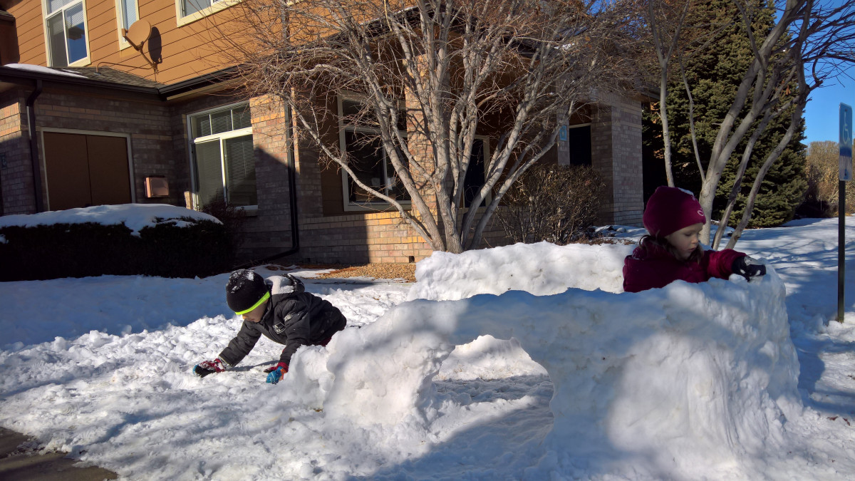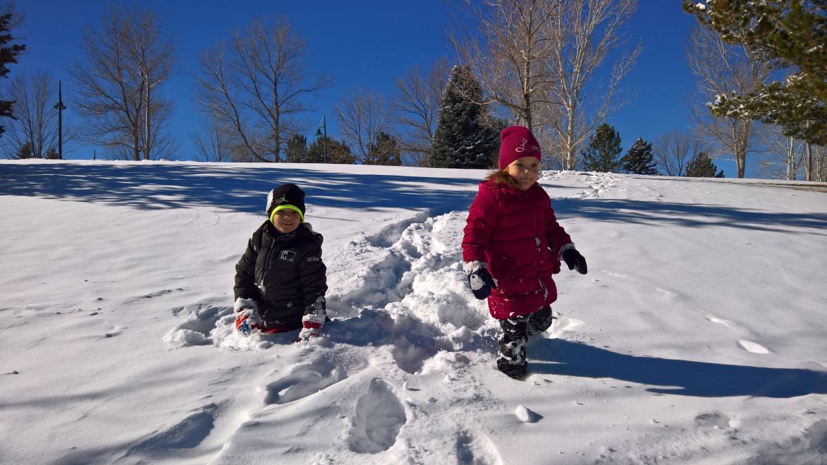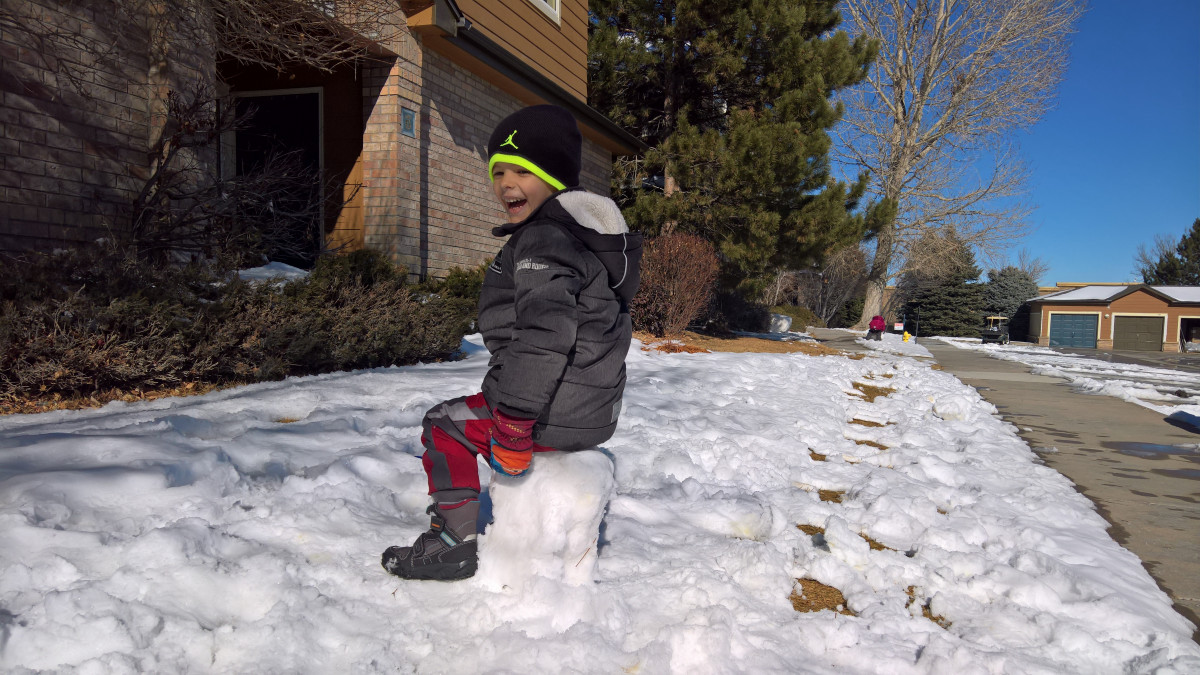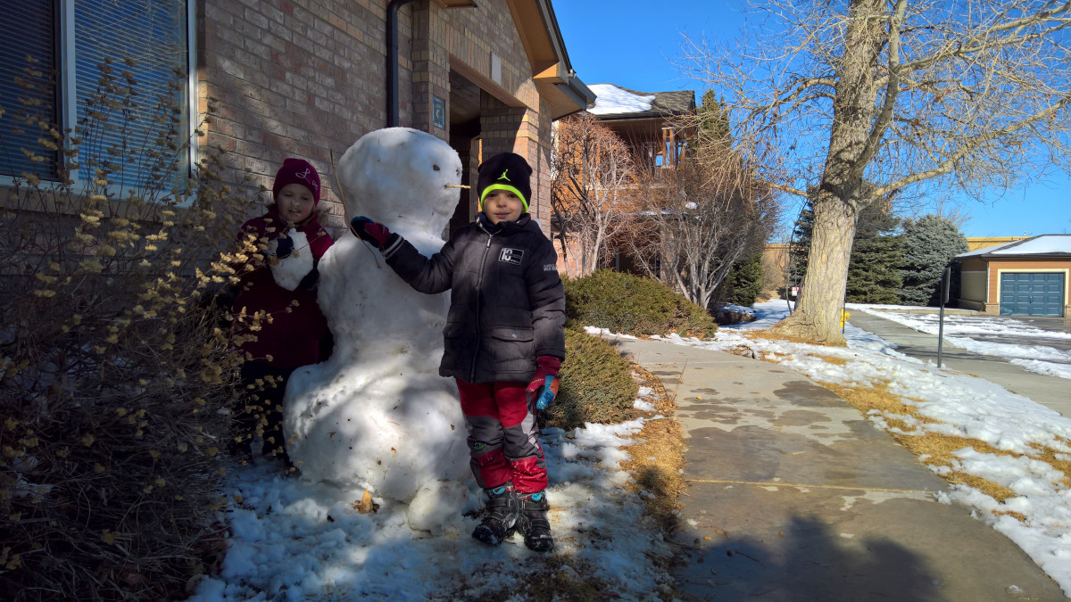 Co se týče počasí, tak zdejší rozmanité počasí mi neskutečně vyhovuje. Nejlepší na tom je to věčně modré nebe a slunce. A mít v lednu teplotu kolem 10°C a pár dní i 18-20°C, nebo naopak teploty pod nulou a sněžení. Prostě žádný stereotyp, (žádné věčné zamračené a chladné počasí celou zimu) paráda. Takže 3 dny jsme na písku a bruslíme/jezdíme na kolech (whirpoolku jsem nakonec zavrhla) a o další 3 dny se brodíme sněhem a stavíme sněhuláky 🙂 A tak jsme jednoho sněhuláka postavili i přímo před okno „dětského pokojíku“. Na jednu stranu to byl skvělý nápad. Mohli jsme ho každý den kontrolovat, jestli tam ještě stojí a jak hezky pomalu taje. Ale na druhou stranu to byl pěkně blbý nápad, protože vždy když jsem vešla do pokoje, tak jsem měla pocit, že někdo stojí u okna. Nejlepší to bylo večer 🙂 🙂 To jsem zase vymyslela. Takže příště už takové „skvělé“ nápady raději ne 😉