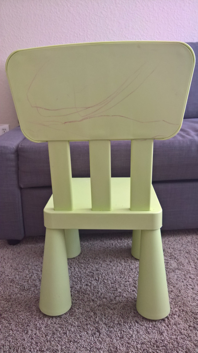 10.ledna měla Verunka 3 roky a 2 měsíce. Váží 15,5 kg a měří 101 cm. Pro porovnání, Kubík měl 15,3 kg a měřil 101 cm. A u Verunky teď probíhá období vzdoru. Je to s ní teď náročné. Ale aspoň že už Kubík to období má za sebou a je už docela v pohodě, a když už něco nastane, tak se s ním dá v pohodě domluvit, vysvětlit mu něco. A Verunka je takový expert, že už si stihla pomalovat židličku. No naštěstí to odnesla jenom židlička a ne zdejší zdi. Doufám, že to bylo její první i poslední dílo. (tá voskovka nejde z té židle odstranit)