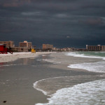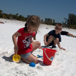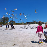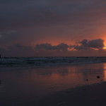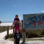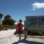 V neděli jsme vstávali zase cca 8:15, šli na snídani a vyrazili konečně z Tampy k moři. Verunka se stihla v aute prospat. Bylo teplo (26°C), ale hodně zamračeno. Schylovalo se k dešti. A jenom co jsme vystoupili u Siesta beach z auta, tak začalo pršet. A tak jsme se šli ubytovat do hotelu. Měli jsme pokoj 405, takže konečně ve vyšším patře (ve čtvrtém- těšila jsem se na hezký výhled, na rozsvícené noční město, no bohužel, nebo díky bohu byli všude kolem jenom stromy a palmy). Když přestalo pršet, tak jsme se šli zase podívat na Siesta beach, to zrovna zapadalo slunce. A to už byla zima a foukal silný vítr. Přesto jsme tam chvíli zůstali.
