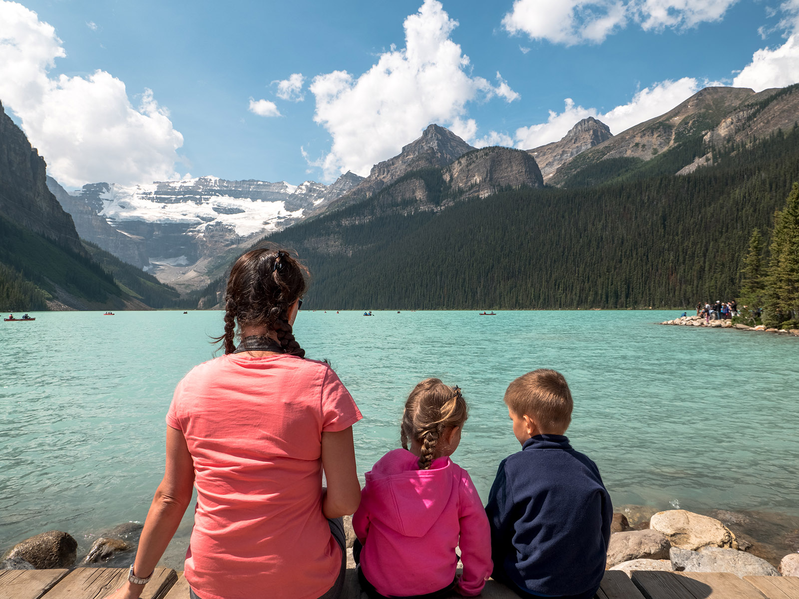 Ve čtvrtek 2.8. jsme odjížděli v 9:15 z hotelu v Calgary a jeli do Banff National Park. Zaparkovali jsme na Lake Louise overflow parking, odkud jely (školní) autobusy až k jezerům. Jako první jsme navštívili jezero Lake Louise. Po Americkém stylu jsme byli vysazení asi 50m od jezera. Byla tam hromada lidí. Nafotili jsme hromadu fotek, najedli se a vyrazili k autobusu, který nás zavezl zpět na parkoviště.