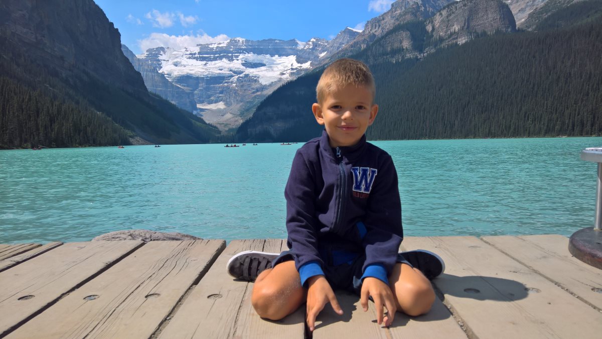 V Pátek 3.8. byla zima (jenom 11°C, a přitom mělo být 18°C a polojasno), zamračeno a místy i poprchalo a pršelo. Z hotelu v Calgary jsme odjeli v 9:30. Vyrazili jsme na chvíli pozdravit Trevora (Honzův kolega z práce – z pobočky v Calgary). Kubíkovi se tam líbilo, hrál s nimi hru (s Trevorem, jeho ženou i 2mi dcerami), která se jmenuje Ladder Ball. Principem je házení 2 kuliček spojených krátkým provázkem na tyč ve 3 patrech. Dle umístění kuliček na tyči se boduje – spodní tyč za 1 bod, střední za 2 body a horní tyč za 3 body. Házelo se 3-krát. Kdo měl víc bodů vyhrál. Kubik tam chce ještě někdy na návštěvu 😊.