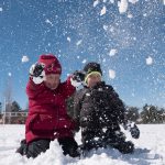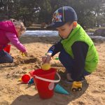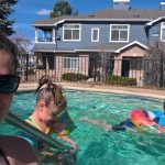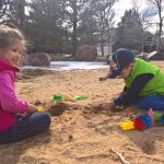Krom sněhové bouře jsme v březnu zažili i teplé počasí, tak jsme řádili v bazénu, a když bylo teplo, ale foukal studenější vítr, tak jsme byli na pískovišti, nebo jezdili na kolech/bruslích.
