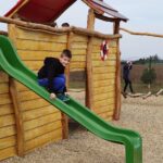 Od 19.dubna chodí Verunka na gymnastiku na venkovní hřiště, tak je nadšená, že konečně nemusí cvičit doma, ale jsou na hřišti i s gymnastickým nářadím a to ji baví.