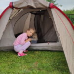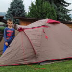 Po týdnu jsme se vrátili pro děti, zašli si konečně celá rodina do lázní (tentokrát jsem to zvládla bez úrazu 🙂 ) a po koupání jsme zašli k Zuzce a postavili si u ni stan. Chtěli jsme zjistit, jestli budou dětí ze stanování nadšené, jestli můžeme někdy vyrazit na dovču i pod stan…. a můžeme, děti se už teď těší na další stanování. Ale obávám se, že jakmile se nám do stanu dostane nějaký brouček, pavouček nebo mravenec, tak už je do stanu nikdy nedostaneme 🙂