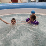 Jelikož Kubík bruslit s námi bohužel nechodí, nebaví ho to, tak jsme začali o víkendu chodit do bazénu, aby měl taky nějaký pohyb. A plávání, potápění ho moc baví. Chodíme do Neratovic, mají tam i super tobogán, který mají oba moc rády.