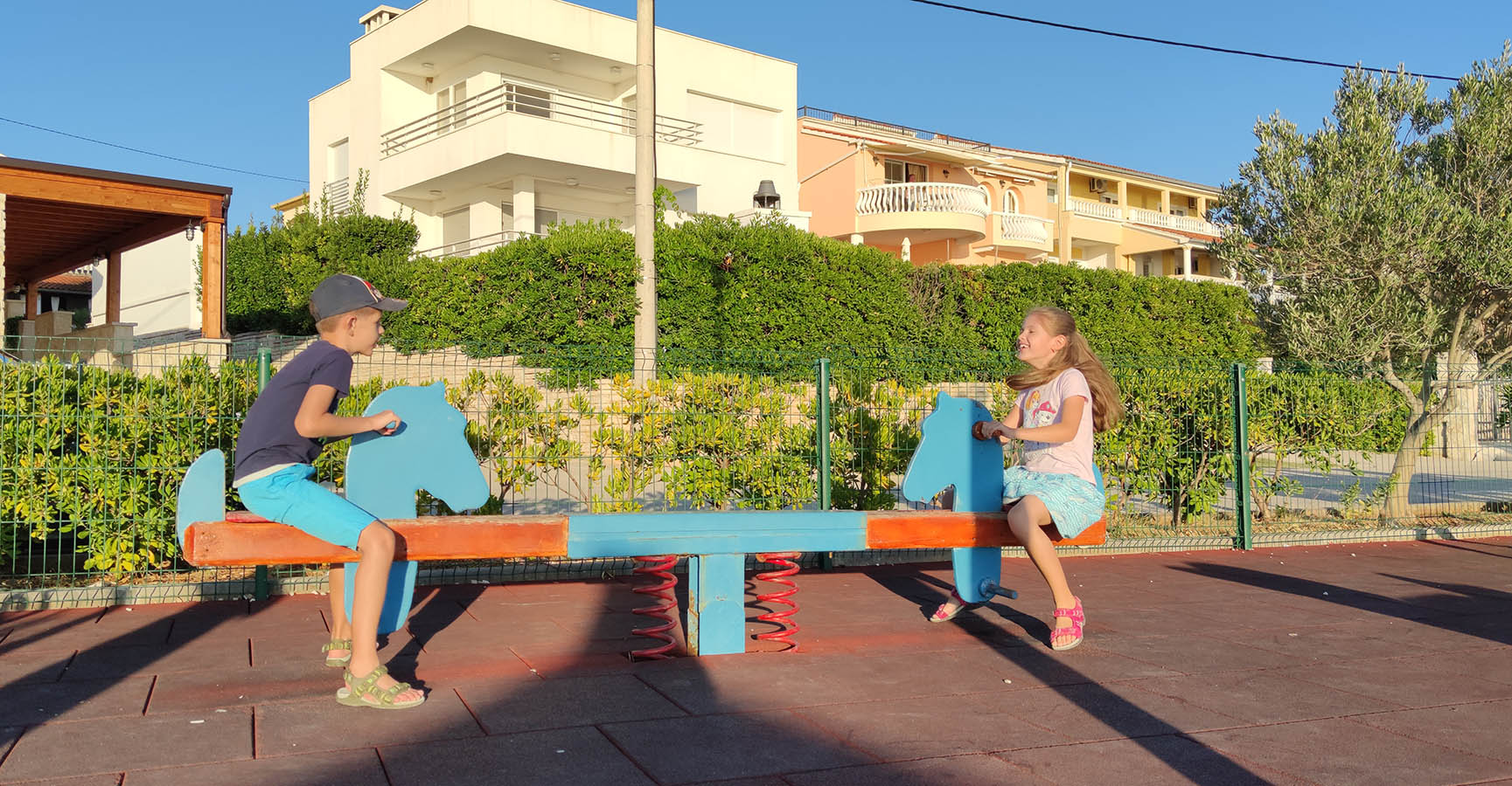 Děti chtěli na to samé místo jako minule, aby jsme si mohli odskočit i na nedalekou píšeční pláž a tak jsme jim vyhověli a rezervovali pobyt ve Vrsi. (Je to nedaleko Zadaru).