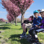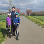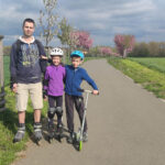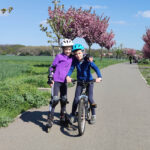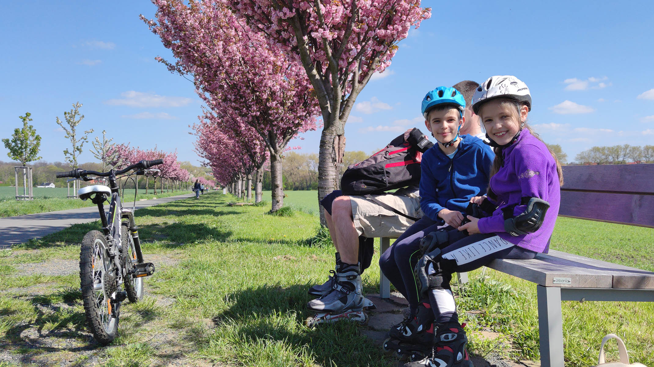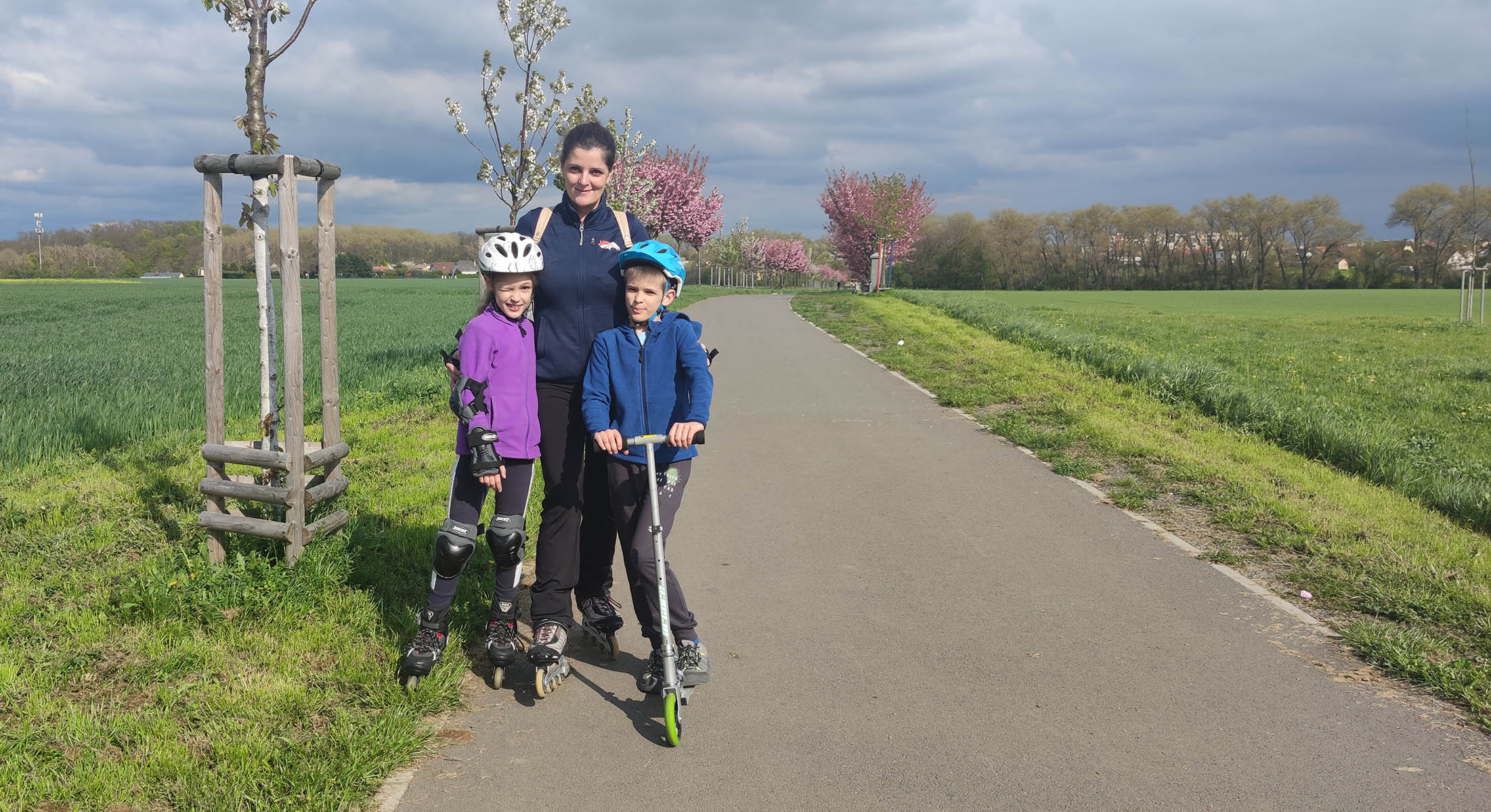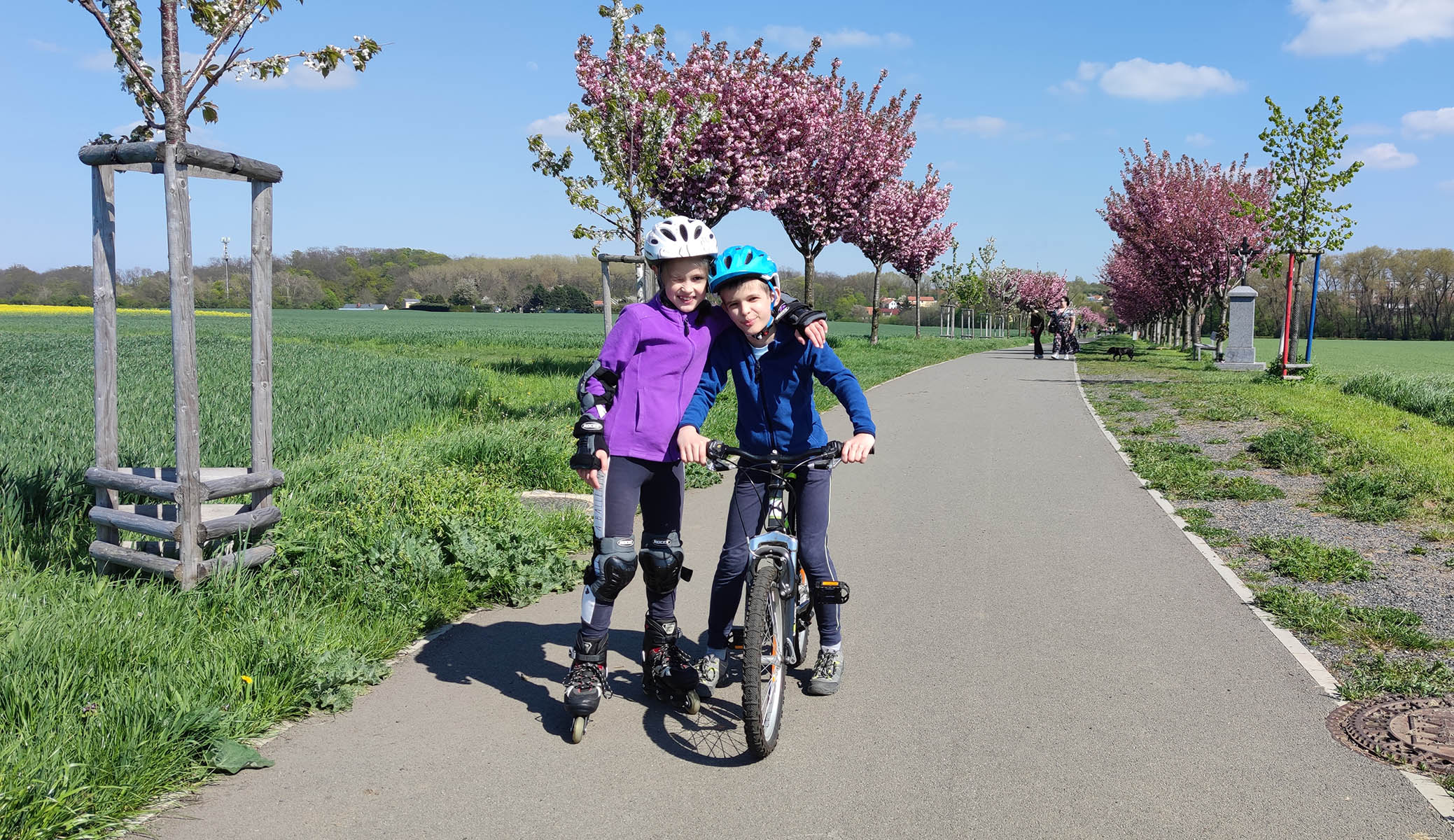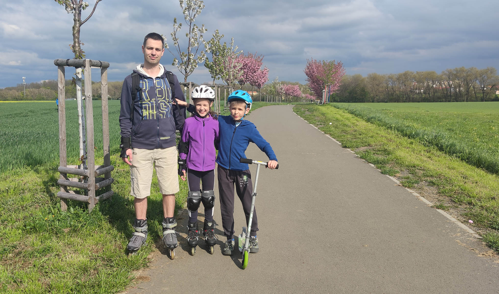V dubnu bylo už i pár teplých dnů a tak jsme neváhaly je využít. Na konci dubna jsme s Verunkou vyměnily lední brusle za kolečkové. Tatínek a Kubík (buď na kole nebo na koloběžce) se k nám přidali. Myslím si, že když Kubíkovi došlo, že on jediný není na kolečkových bruslích, tak mu to asi bylo líto a tak chtěl zkusit i brusle. První den trénoval asi jenom 20 minut a druhý den po pár minutách už byl schopný i bruslit, když jsme ho drželi za ruku. Říkal, že to není tak hrozné jak lední brusle, tak je šance, že nakonec bude na kolečkových bruslích jezdit s námi.